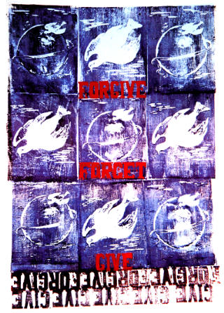 die künstlerin hat den farbholzdruck gewählt, um mit diesem handwerk ihre intentionen bildlich und wörtlich zu gestalten.